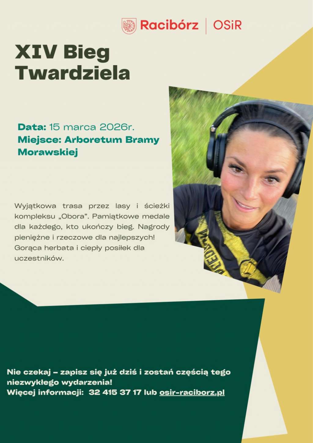 Osoby zainteresowane udziałem mogą rejestrować się online do 18 lutego na stronie zapisy.personalbest.pl/xiv-bieg-twardziela-v15410. Oobowiązuje limit 250 uczestników. Szczegółowe informacje dotyczące biegu można uzyskać pod numerem telefonu 32 415 37 17 lub na stronie internetowej osir-raciborz.pl.