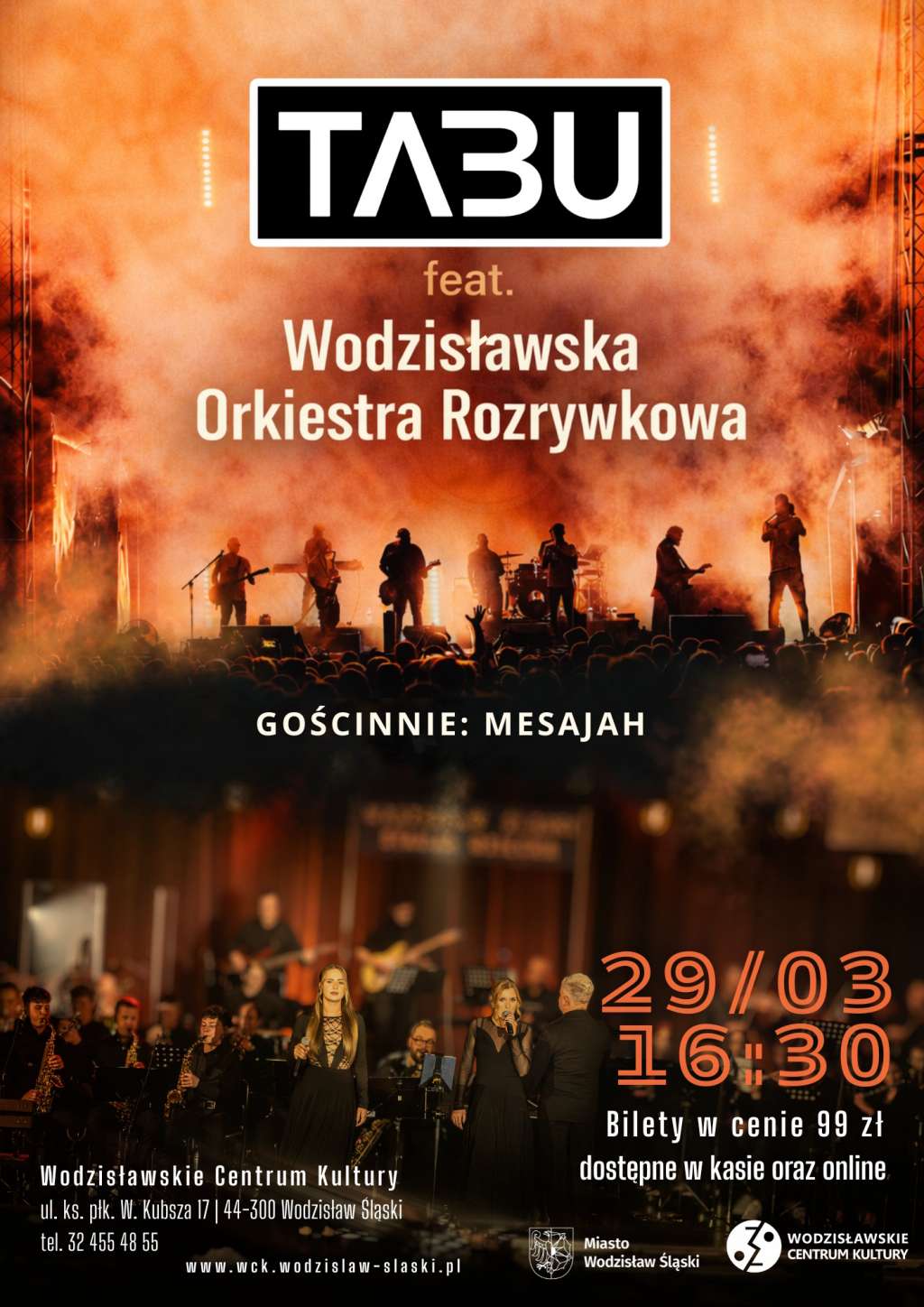 W Wodzisławskim Centrum Kultury odbędzie się koncert przygotowany przez Wodzisławską Orkiestrę Rozrywkową, we współpracy z zespołem TABU. Wydarzenie zostało zaplanowane jako prezentacja repertuaru grupy TABU, w aranżacji na kilkudziesięcioosobową orkiestrę pod batutą Marka Soboty.