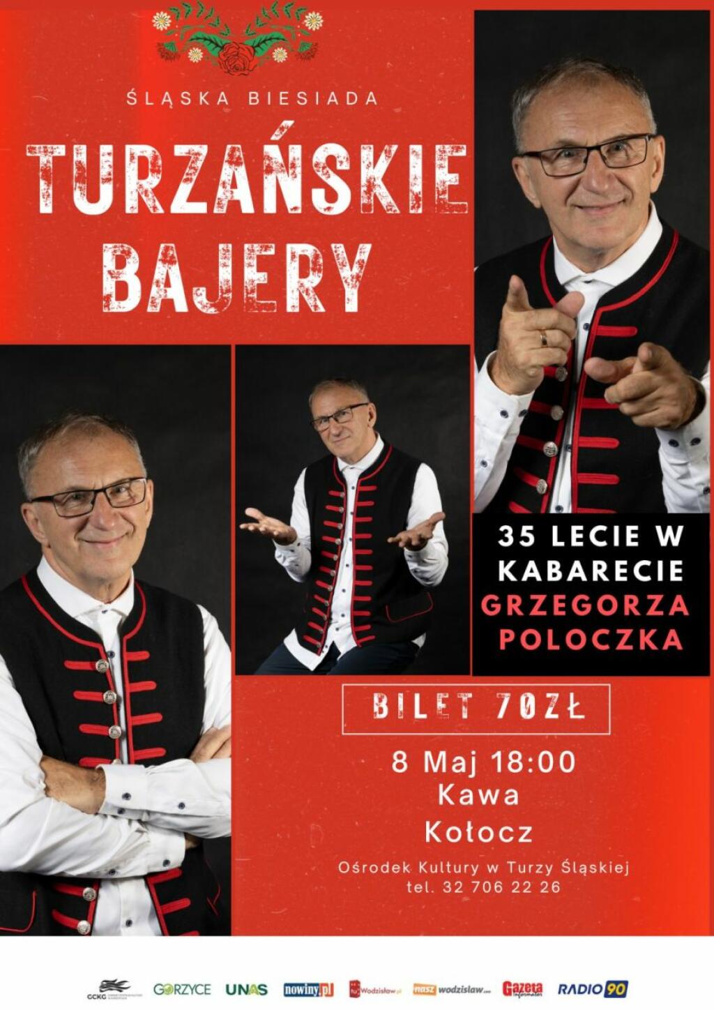 Ośrodek Kultury w Turzy Śląskiej zaprasza na śląską biesiadę zatytułowaną „Turzańskie bajery”, która odbędzie się 8 maja o godz. 18:00. Głównym punktem programu będzie występ Grzegorza Poloczka uświetniający 35-lecie pracy artystycznej tego popularnego twórcy. Wydarzenie zostało przygotowane z myślą o miłośnikach regionalnej kultury, a jego program opiera się na połączeniu humoru, śląskich opowieści i muzycznych wspomnień integrujących różne pokolenia uczestników.